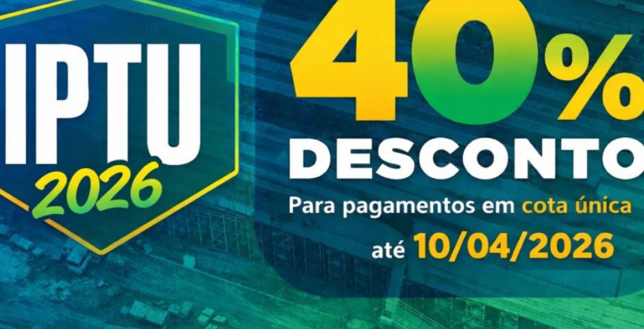 Conforme o calendário fiscal estabelecido por decreto municipal, o IPTU 2026 poderá ser pago em parcela única com os seguintes descontos: