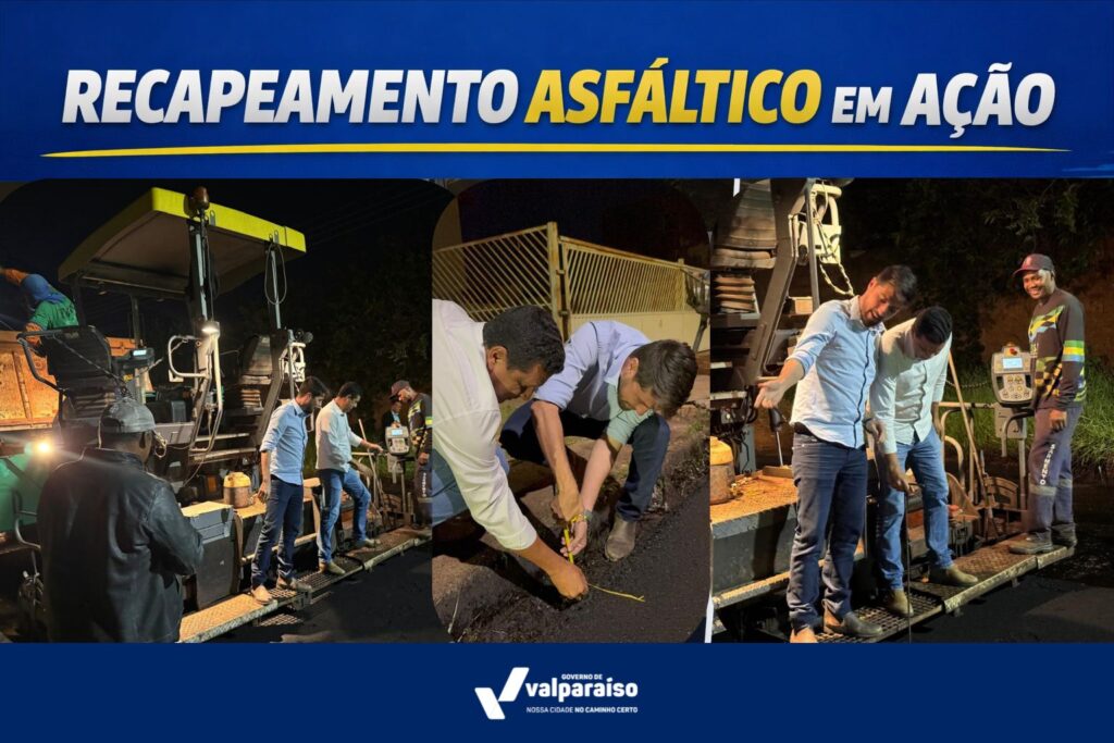 A Prefeitura de Valparaíso de Goiás segue com os trabalhos de recapeamento asfáltico e, nesta etapa, as equipes atuam no bairro Cruzeiro do Sul. O cronograma prevê a contemplação de 100% das ruas, com caminhões de massa asfáltica já em operação. Os serviços começaram pela avenida principal, onde um dos lados da via foi concluído, e agora avançam para o outro lado e, posteriormente, para as ruas laterais.