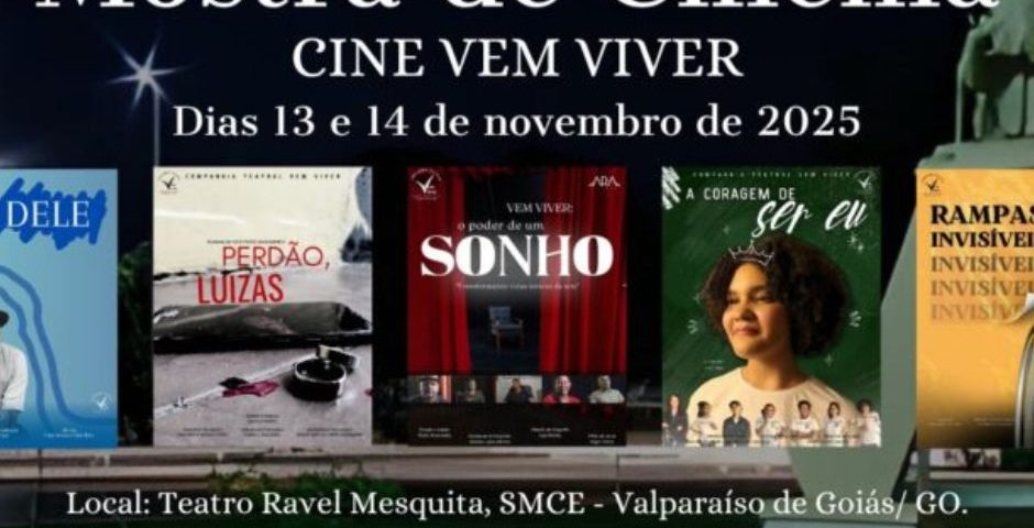 Nos dias 13 e 14 de novembro de 2025, o município de Valparaíso de Goiás sediará mais uma edição da Mostra de Cinema – Cine Vem Viver. O evento ocorrerá no Teatro Ravel Mesquita, localizado na sede da Secretaria Municipal de Cultura e Esporte (SMCE), e contará com sessões de exibição às 9h30, 15h e 20h. A entrada será gratuita e aberta à comunidade.